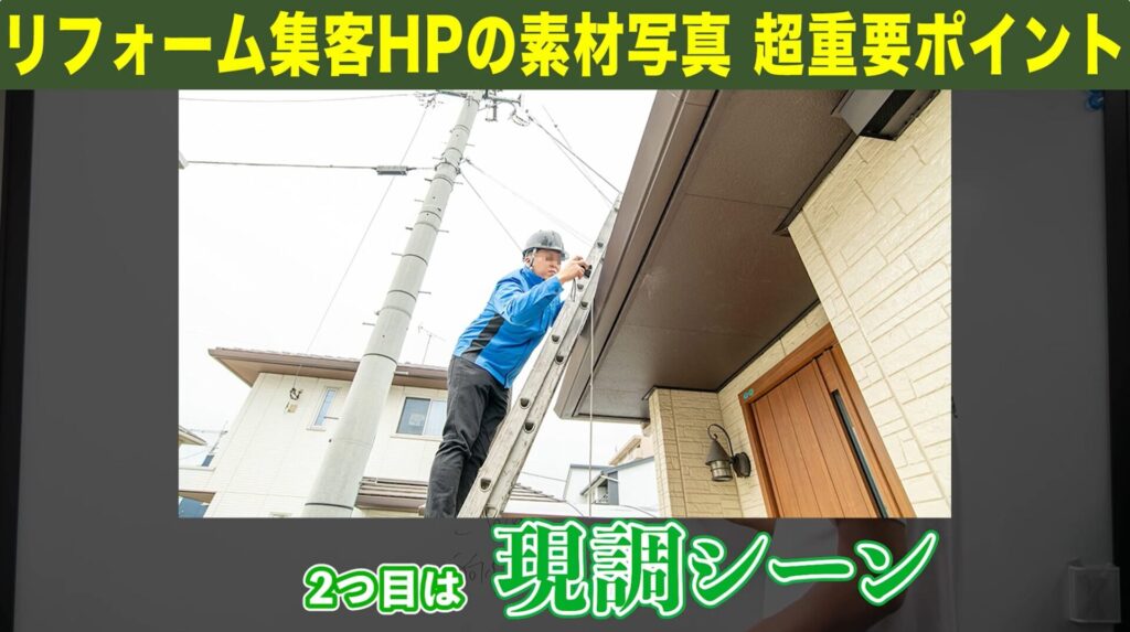 3つ目は「施工現場」の撮影です。特に外装リフォームのお客様の場合は、天候が重要です!一方、内装リフォームのお客様の場合は天候は関係ありませんが、ショールームで撮影できると印象のよいサイトが出来上がります。