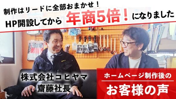 実際に、当社でHPを制作された新潟市の(株)コヒヤマ様は、「全て任せる」という気持ちで任せていただいた結果、今では売上は5倍に伸び、その中でもHPからの反響によるものが7~8割だと言っていただいています。