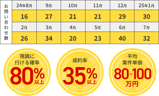 これらは実績の一部です。いずれも、リスティング広告やチラシなど、他の広告宣伝は行っていません。
