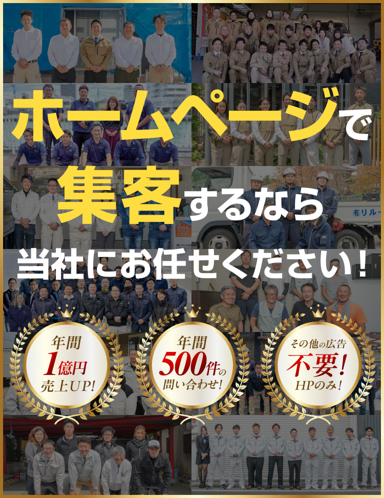 当社は、リフォーム業界専門のホームページ制作会社として、これまで全国500サイトを超えるホームページを制作してきました。その中で得てきたノウハウや、業界知識をフル活用し、お客様のホームページを集客できるホームページにアップデートします︕