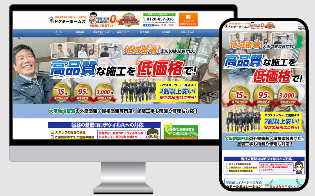 大阪府摂津市 外壁塗装業 ドクターホームズ様 集客用ホームページ制作